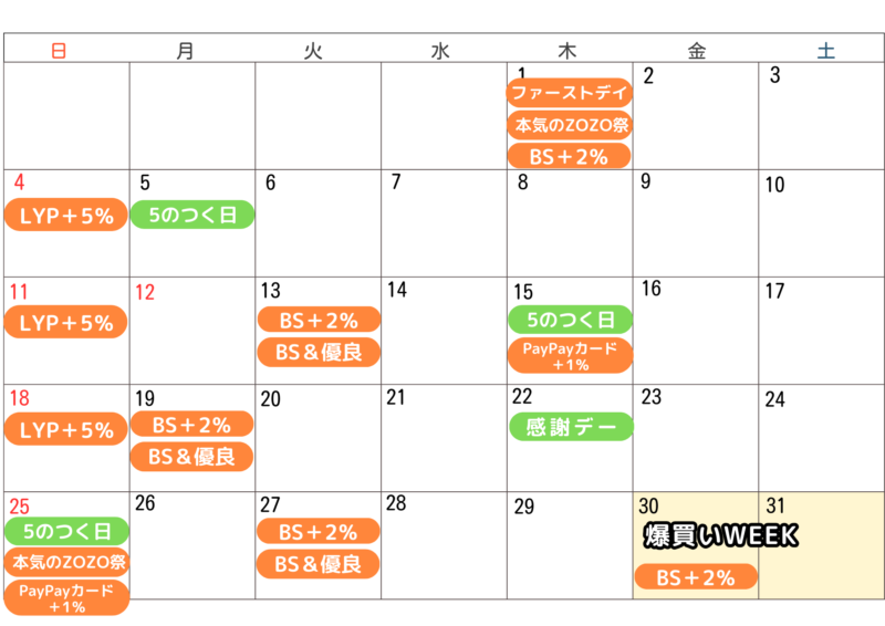 - 1月25日:本気のZOZO祭×5のつく日×PayPayカードで+1%